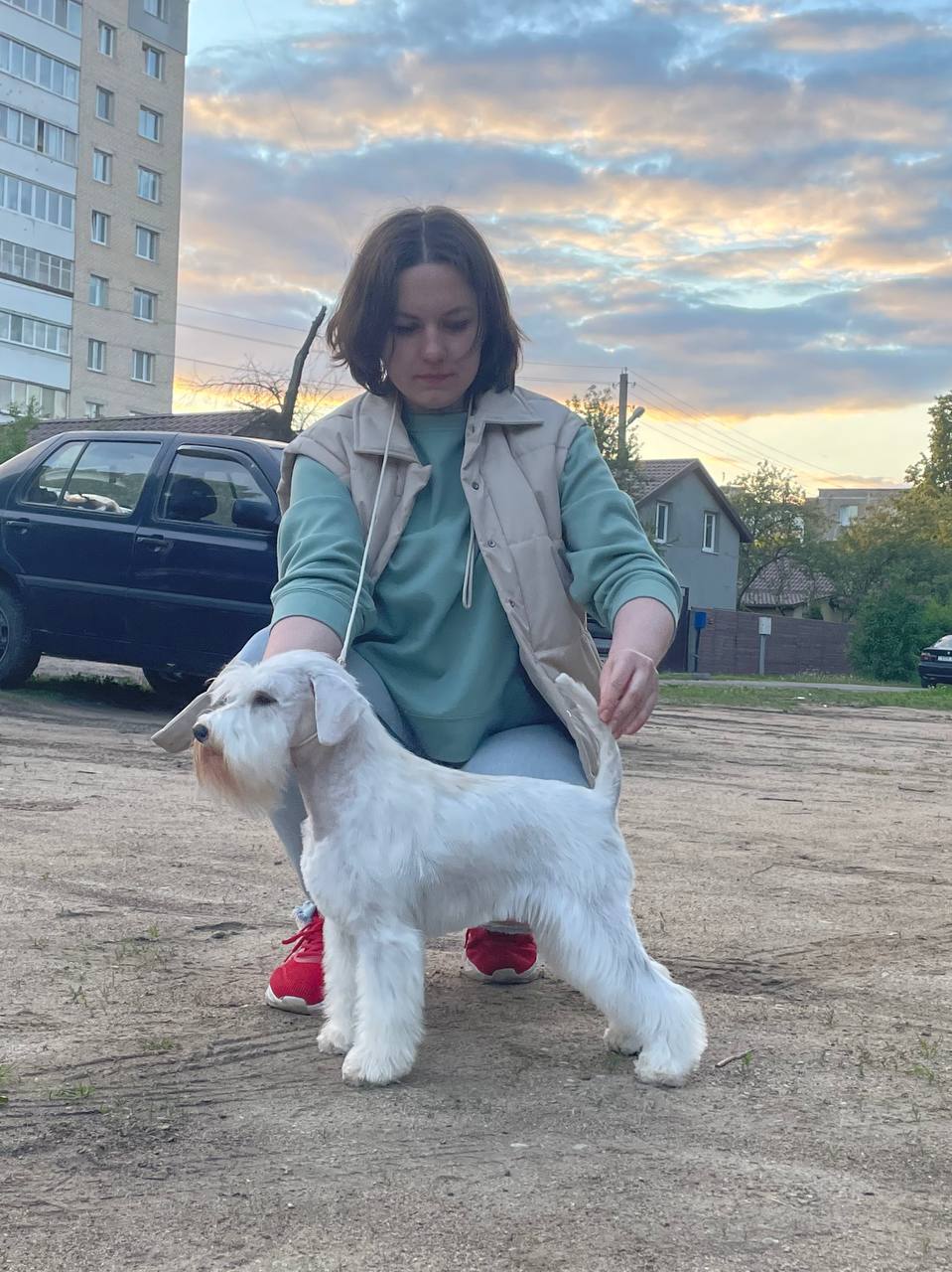 Белые цвергшнацеры — это особая любовь! Только они настолько растворяются в хозяине, что создают с ним единое целое и полностью влюбляют в себя! Именно такая наша Лора, нежная, вдумчивая, западающая в душу! Дочь выдающихся родителей, оба Интерчемпиона, отец чемпион Мира. Обстоятельства в мире не позволили нам много поездить и собрать иностранных титулов, но Лора многократно выигрывала выставки и один раз даже выиграла у своего именитого отца!